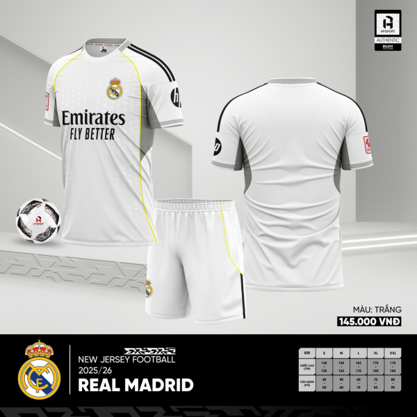 Áo CLB Real Marid trắng 2025-2026 thun mè