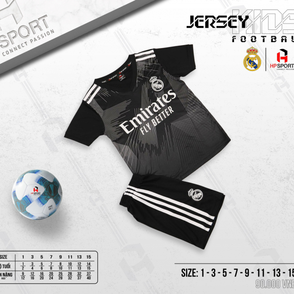 Quần áo bóng đá trẻ em tuyển CLB Real có đặc điểm sau: