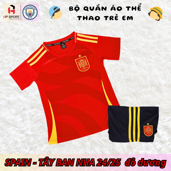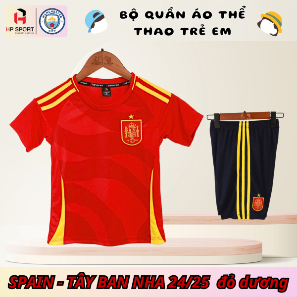 Quần áo bóng đá trẻ em tuyển Tây Ban Nha có đặc điểm sau: